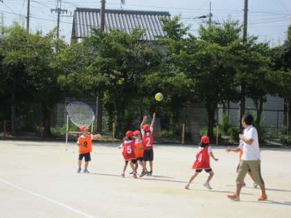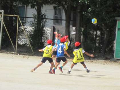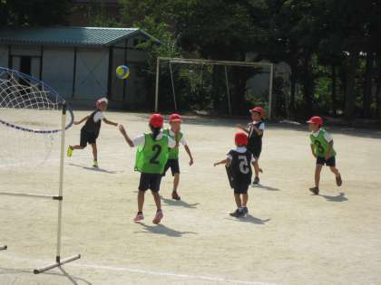 2年1組では,体育でパスゲームを楽しんでいました。