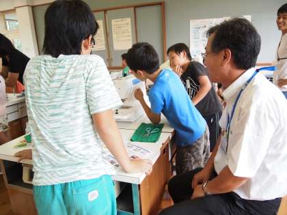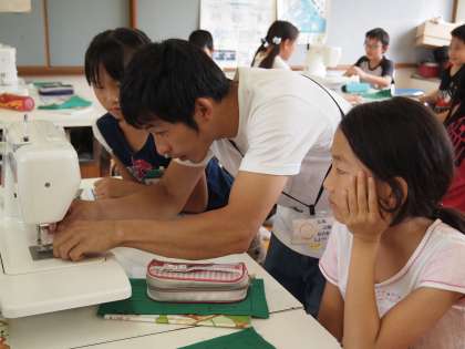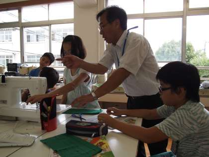 教頭先生はなかなかミシンの指導が上手なようです。みんな集中して聞いていました。
