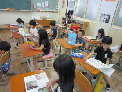 1年2組では,読書を楽しんでいました。