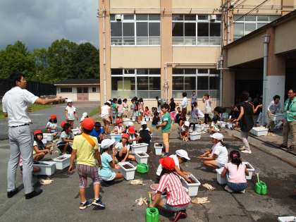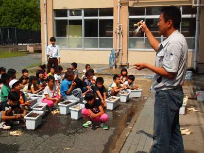 土を入れて水を入れて混ぜ合わせ,プランターの準備ができました。