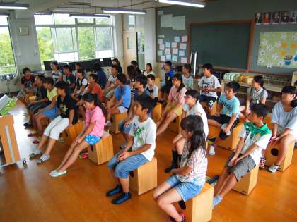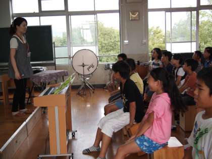 6年1組です。今度学年で合同演奏会をするそうです。(授業の中で)その曲は…『学園天国』運動会の組体操で使った思い入れのあるメロディです。今日は楽器の役割分担をしていました。仕上がりがとっても楽しみです!