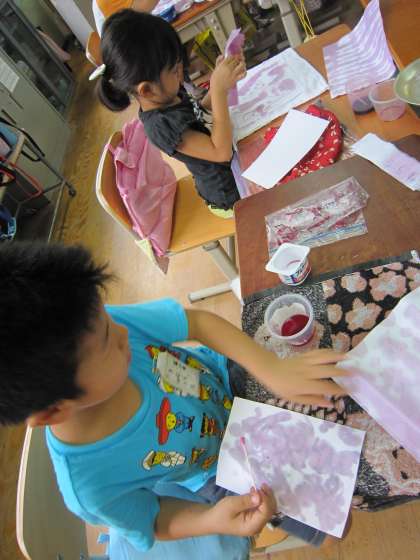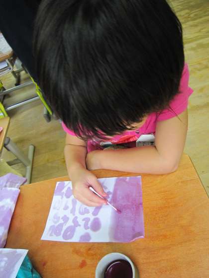 綿棒を使ったりして,色水で絵を描いていました。