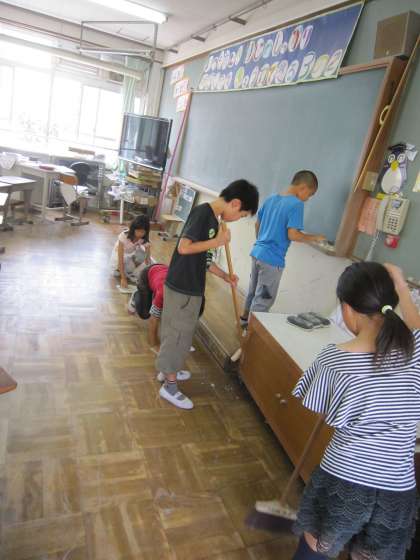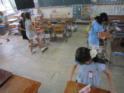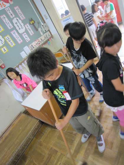 がまん玉を磨きながら,掃き掃除をがんばる子ども達でした。