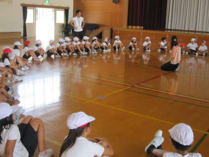 今日は,体育館でキャンプファイヤーで踊る「マイムマイム」の練習をしました。