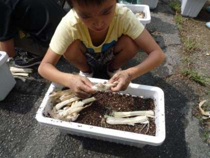 乾燥ねぎを,茶色の部分の皮だけきれいにとります。