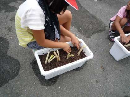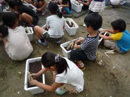 穴をあけることをめんどくさがり,根っこでグリグリ押しあけている子どももが一部いました。