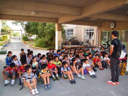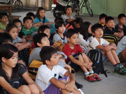 5年生がそろいました。今日は社会見学です。四日市港とホンダ鈴鹿工場に行ってきます。学年の先生の話をしっかり聞いている姿が印象的です。