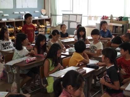3年2組が新出漢字の学習です。「緑」を使った言葉…「緑地」「新緑」「緑茶」などが挙がっていました。いい言葉ですね。