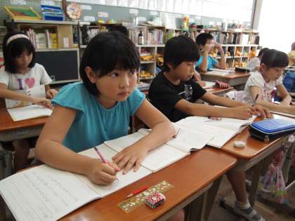4年2組は「手と心で読む」の一部を要約しているところです。こういう力はこれから大事になってきます。