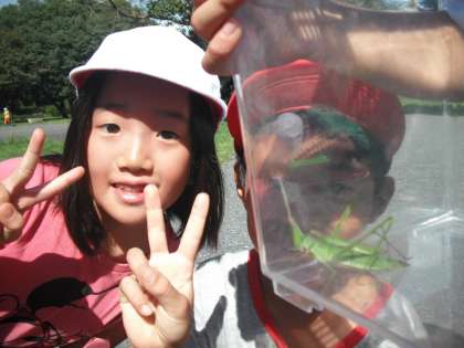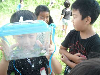 つかまえるのが怖い子と,積極的に取りに行く子と様々でした。でも,つかまえたあとはみんなかわいがってながめていました。
