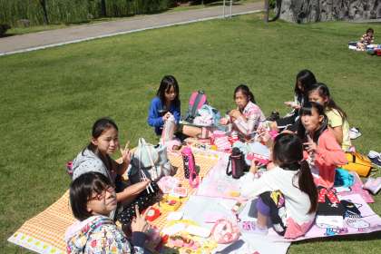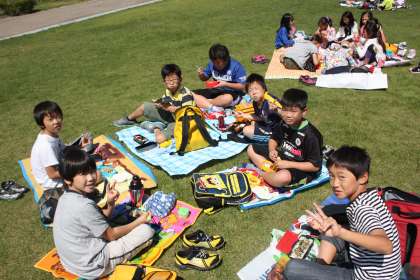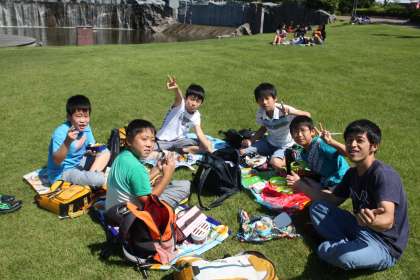 お弁当は,四日市港ポートビルの前にある芝生の公園でいただきました。