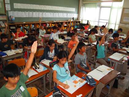 5年1組も「整数」でした。いくつか黒板に整数を書き出し,「それは奇数か偶数か?」を問われていました。