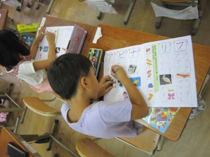 1年生は,ひらがなの後カタカナや漢字の学習をしています。
