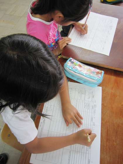 3年1組では,体育の後に,その日の記録やふりかえりを書いていました。