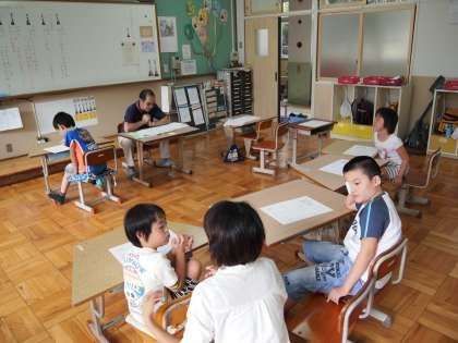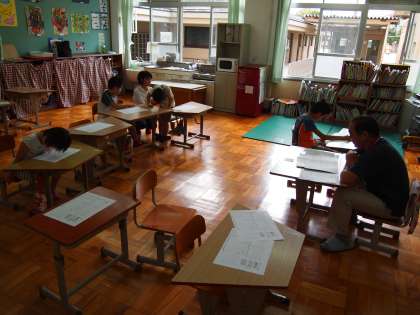 あおぞら学級,学級通信を読んでもらっているところです。「一輪車」のことが日記に出てきていたようです。みんなは乗れますか?先生は乗れないそうですよ。