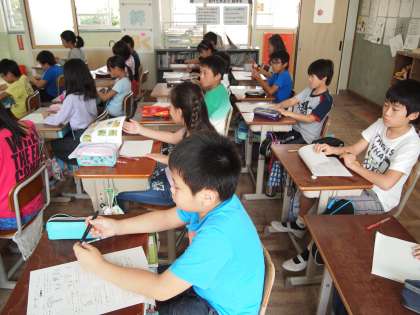 5年2組はテストを返してもらっていました。理科の「花から実へ」のところです。「難しかったわ…」と言っていた子もいました。