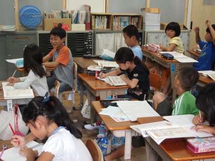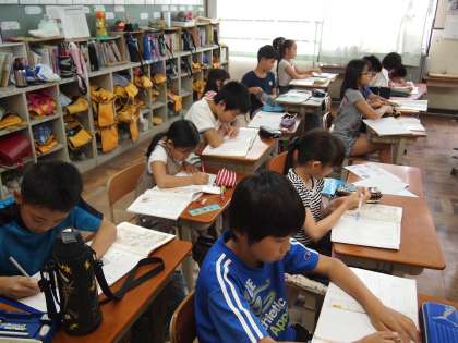 4年2組です。国語の教科書に「漢字の広場」というのがあります。個々に出てくる熟語をできるだけたくさん使って文章を作ろう…というものです。