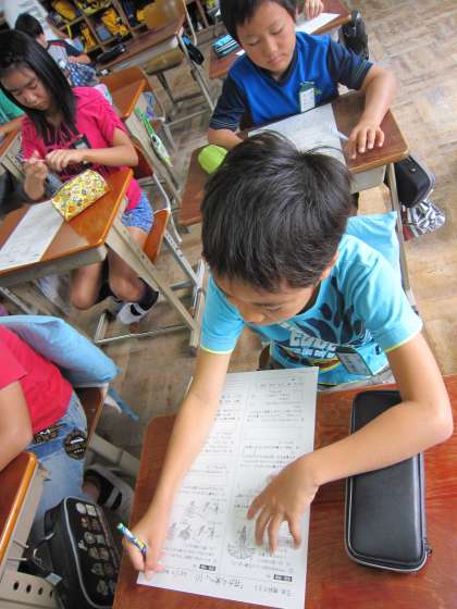 5年2組では,理科で「花から実へ」の学習を終え,今日は,プリントを使って学習してきたことのおさらいをしていました。