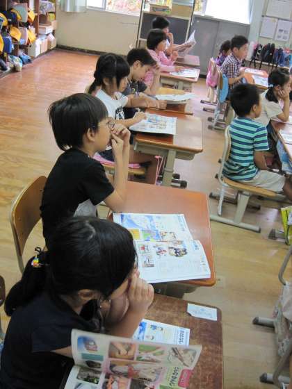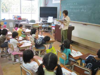 1年1組では,お話を聞いてどんな絵にしようかと考えていました。