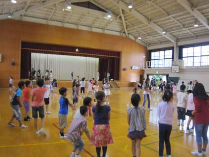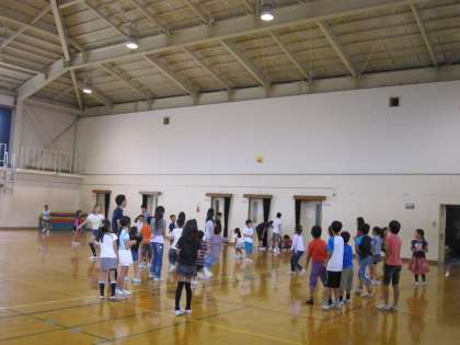 体育館では,ボールを使った遊びをしたりだるまさんがころんだをしたりしていました。高学年の子ども達が,うまくリードしながら遊んでいました。