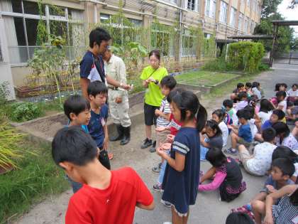 地域の松本さんに育て方を教えてもらい,今日種まきをしました。