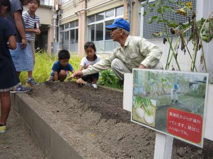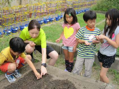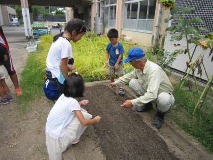 一人一人種をもち,植え方を教えてもらいながら,植えていきました。