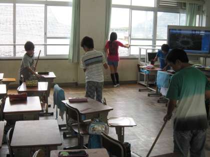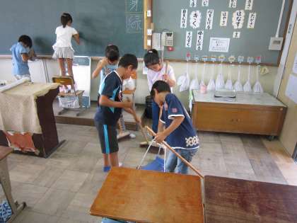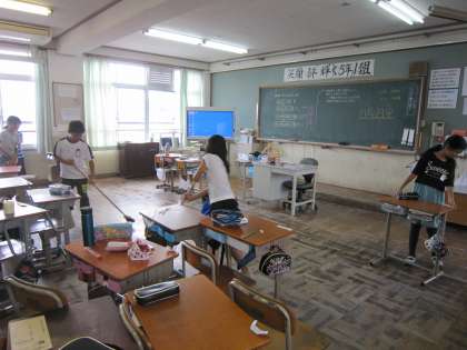 5年生の教室では,子ども達がてきぱきと掃除を進めていました。