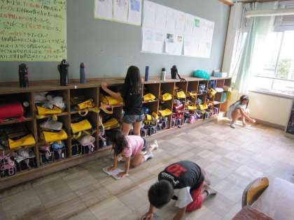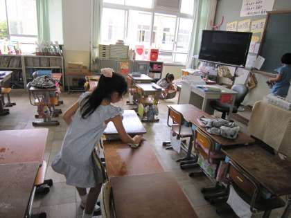 床や黒板の周りなど,みつけ玉を磨こうときれいにしていました。