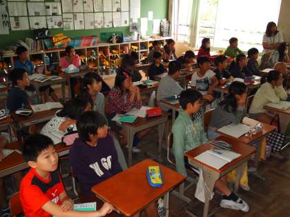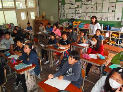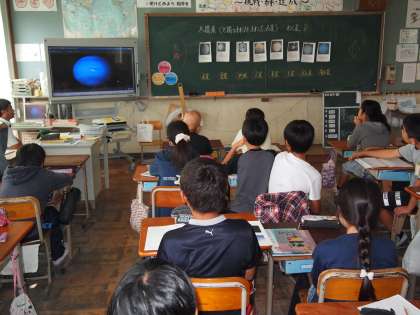 6年2組は理科の時間。「太陽系の惑星」のビデオを見て,太陽からの距離などを確認していました。