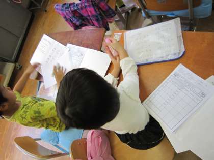 音読カードを使って,いろいろな学年が音読の練習をしています。