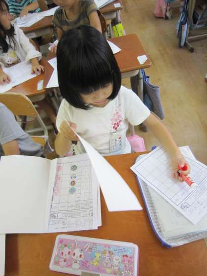 今日の1年1組では,今週の音読練習用に音読カードを配布していました。