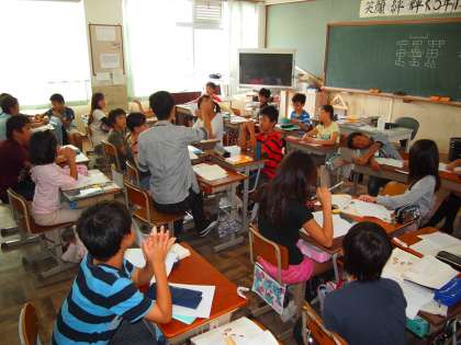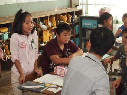5年1組です。国語の「豊かな言葉の使い手に」の中で,学んできたことや調べたことをもとに討論会をするそうです。今日はそのための準備の時間のようでした。
