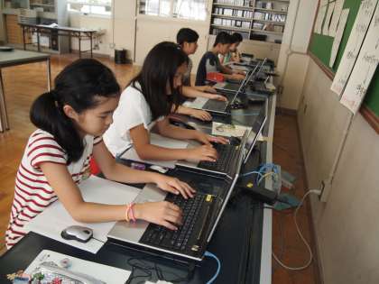 6年2組は国語です。「意見文を書こう」の中で広島の原爆に関する資料を探しているそうです。ここから得た情報を自分の意見にどうつなげていくのか…これからですね。