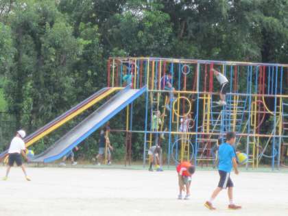 中間休み,雨上がりの運動場で元気よく遊ぶ子ども達がいました。