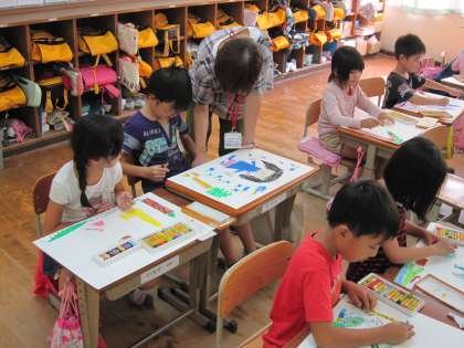どの子も楽しそうに,色塗りをしていました。