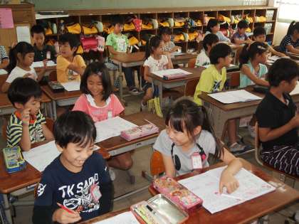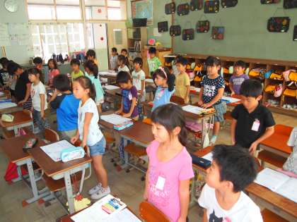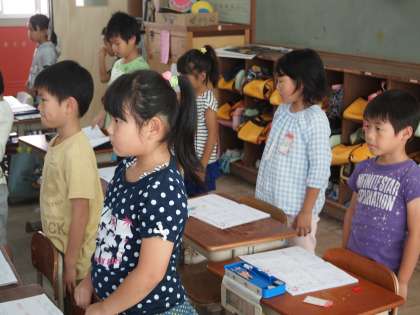 2年2組です。算数の時間が今から始まります。今日もがんばってやりましょう!