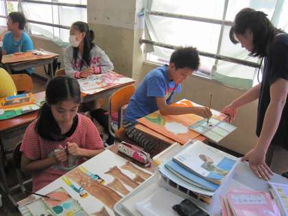 6年2組では,今日もお話の絵に取り組んでいました。