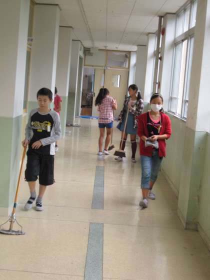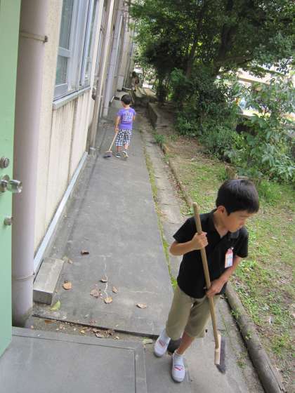 今日もそれぞれのそうじ場所を懸命にはいている子ども達がいました。
