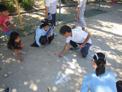 そこで,メジャーの出番です。ポイントから遠いチームから投げるので,あるときには,一回ごとに測ってどちらが遠いのかを確かめていました。