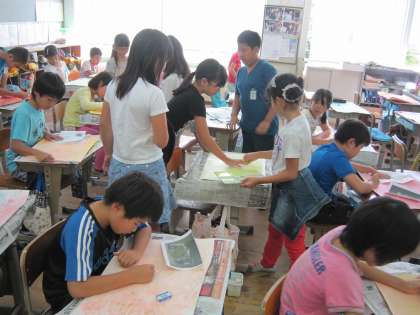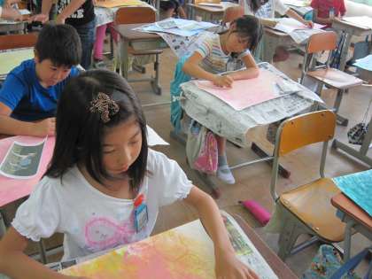 4年1組では,お話の絵に取り組んでいます。
