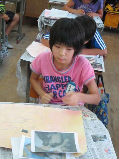 今回は,一度画用紙に色を付け色画用紙にしました。そのあとに,下描きをしています。さて,どんな出来上がりになるのでしょうか。楽しみですね。