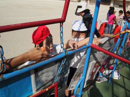 2年1組とあおぞら学級の交流の時間です。実はこれ「ならべて つつんで つないで」という図画工作の時間なのです。