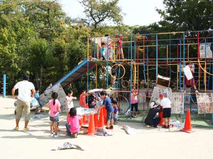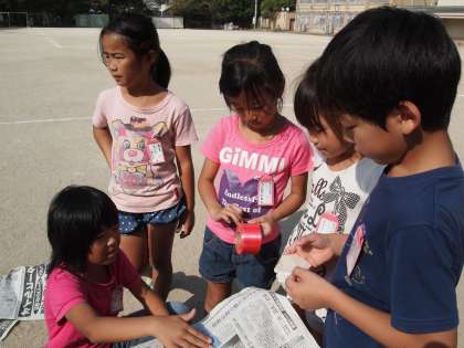 朝の日差しを浴びて子どもたちの活動は続きます…。