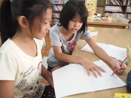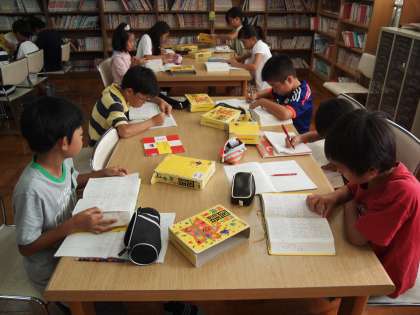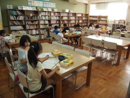 5年1組が図書館で辞書を使っていました。『大造じいさんとガン』の学習に備えて難しい言葉を調べているのでした。