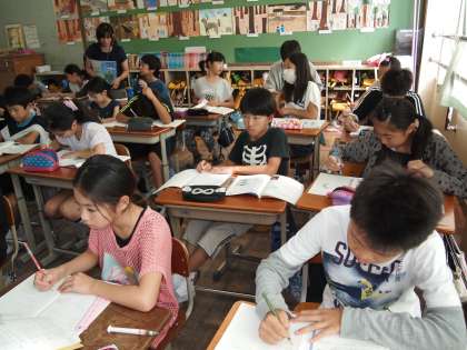 6年2組は算数「速さ」の確かめ問題に取り組んでいました。「時速と分速,秒速の関係」などしっかり押さえておかなくてはいけませんね。