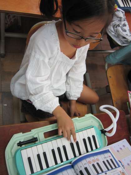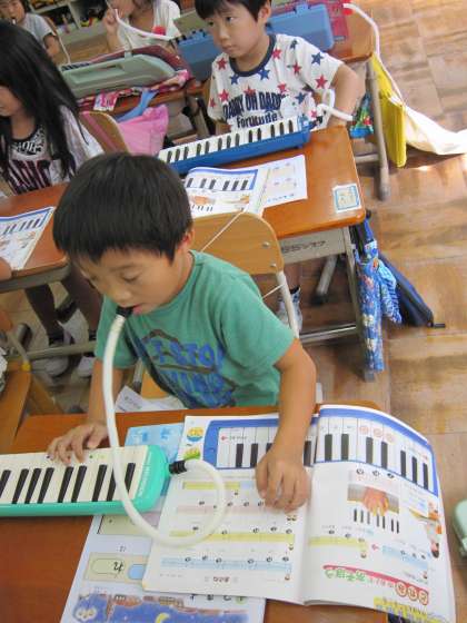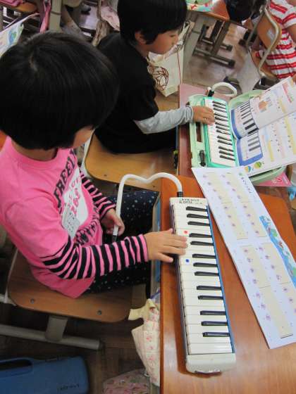 1年2組では,「どれみのおとであそぼう」を鍵盤ハーモニカで演奏しようとしていました。