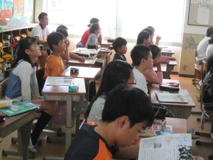 6年1組では,社会科で映像資料を見て,これまでに学習したことを復習していました。