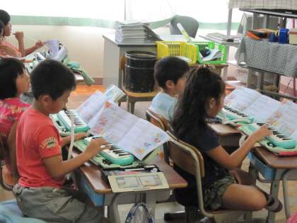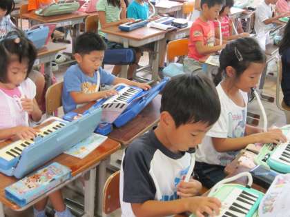 2年1組では,音楽でスタッカートに気をつけて演奏をしようとしていました。