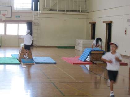 今日の1組は,開脚とびや台上前転などの練習をしていました。