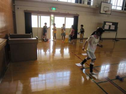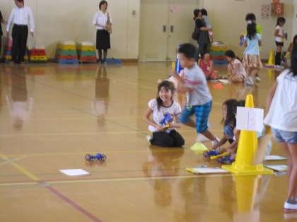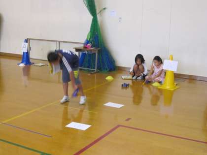 今日のめあては,「ゴムの力を調節してめざせホールインワン」です。